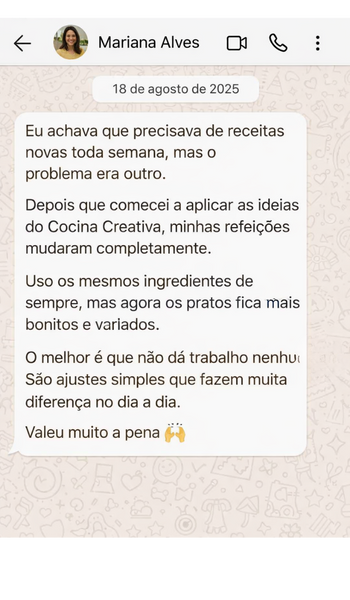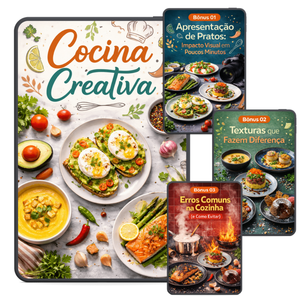 O Cocina Creativa foi criado para pessoas comuns, que cozinham no dia a dia e querem variar, melhorar a apresentação e ter mais ideias — sem técnicas difíceis.